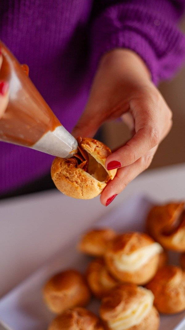 Bombas Mixtas rellenas con Crema pastelera y Dulce de leche repostero